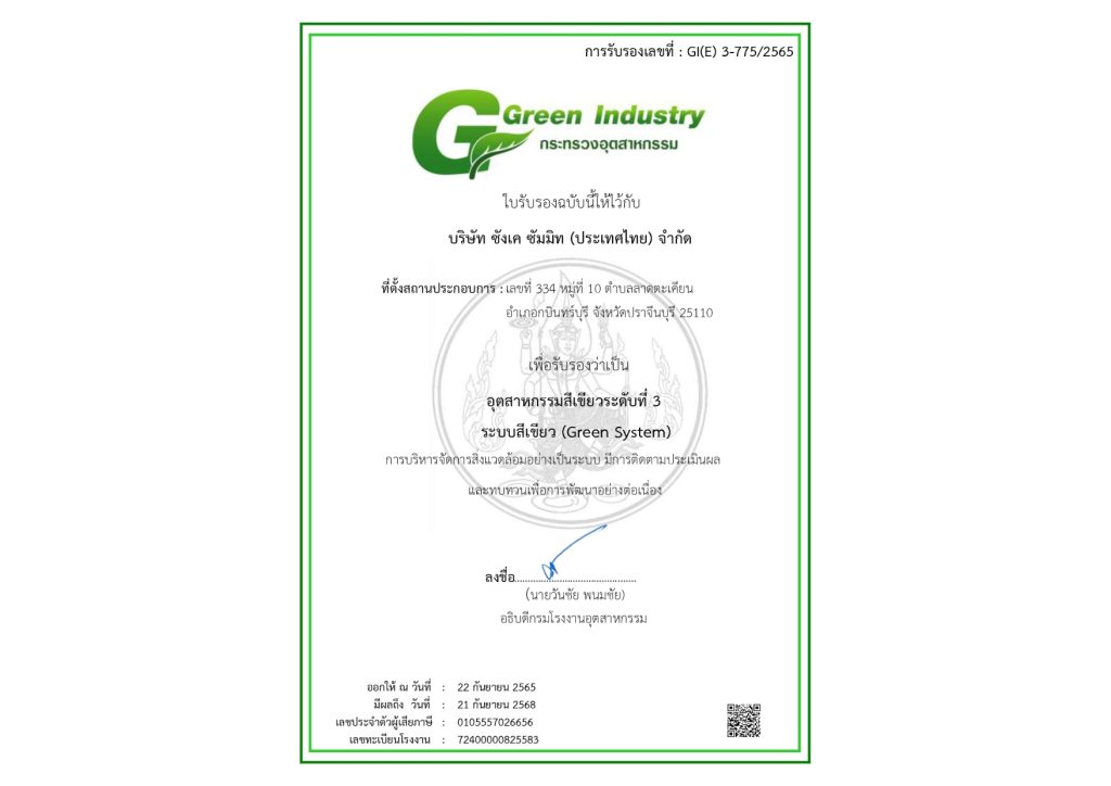 Besides regulations for international standards. Our production facilities have consistently obtained regulations certified from Institutions that various certified industries standard in Thailand as follows