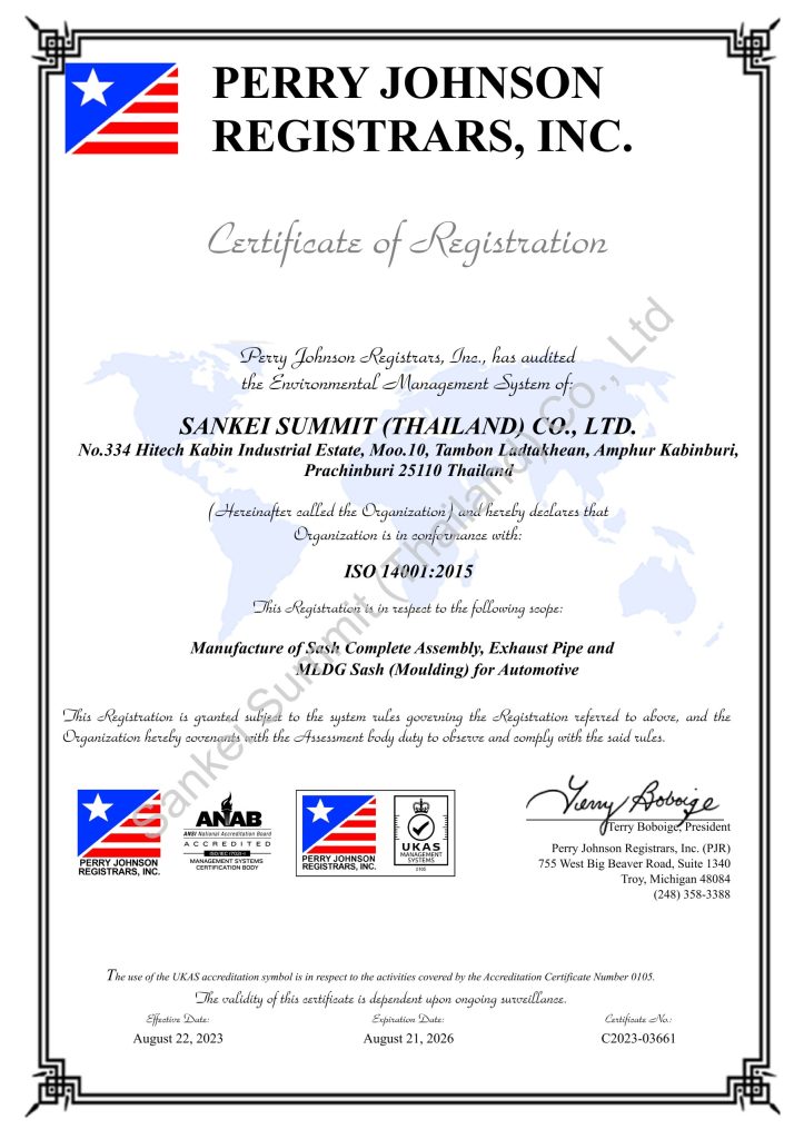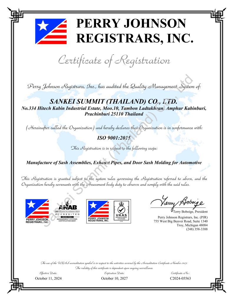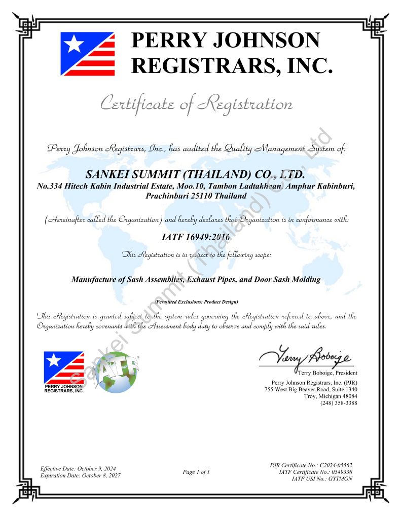 SST places the highest priority on following regulations for international standards to flourish in the global market. Our production facilities have consistently obtained the international certifications of ISO 9001 for quality assurance, observing quality regulations of the world market, and ISO 14001 for environmental compliance, to fulfill our responsibility to preserve the global environment including TS16949 for International Automotive Task Force (IATF).