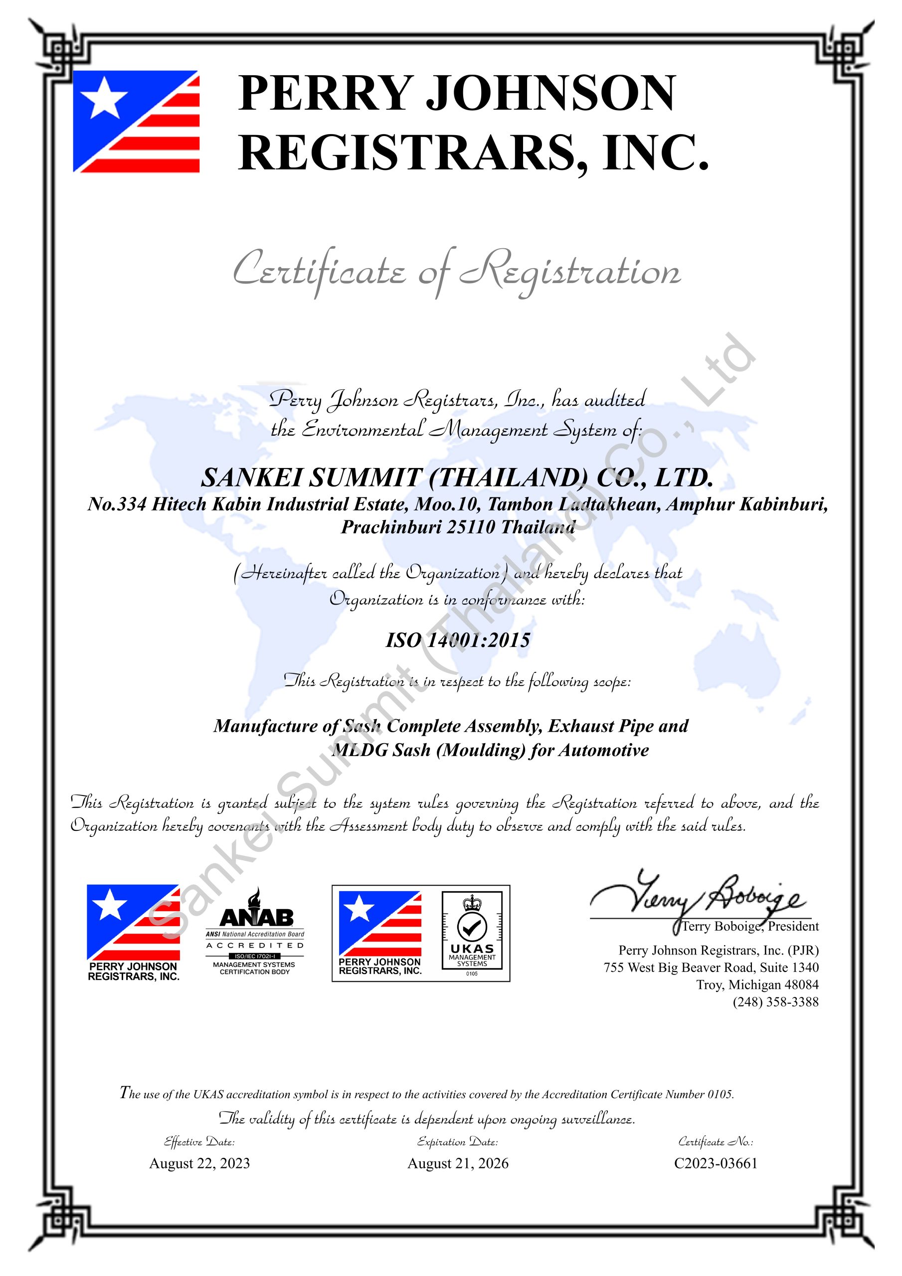 follows the requirements of ISO 9001:2015, ISO 14001:2015, and IATF 16949:2016, and the compliance system